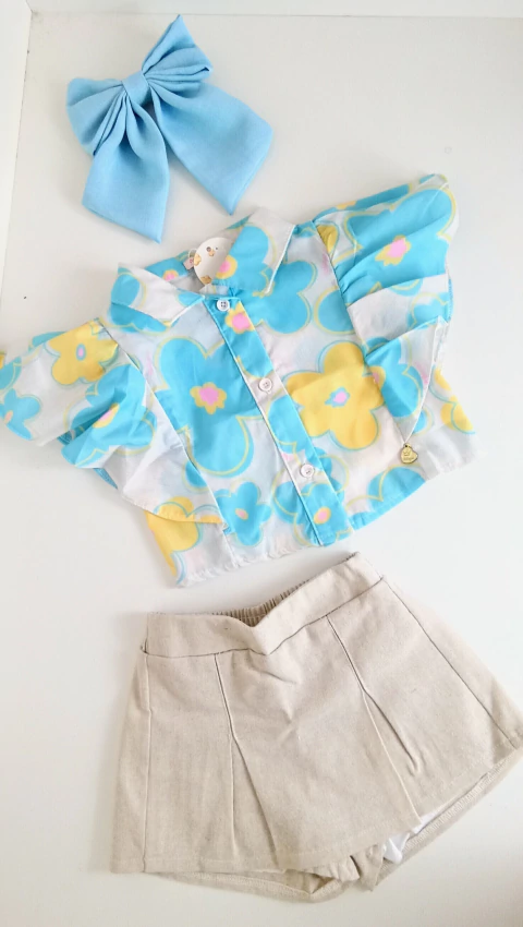 Conjunto infantil moderno e delicado, perfeito para deixar o visual da sua pequena ainda mais estiloso! 💙🌼
